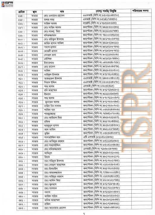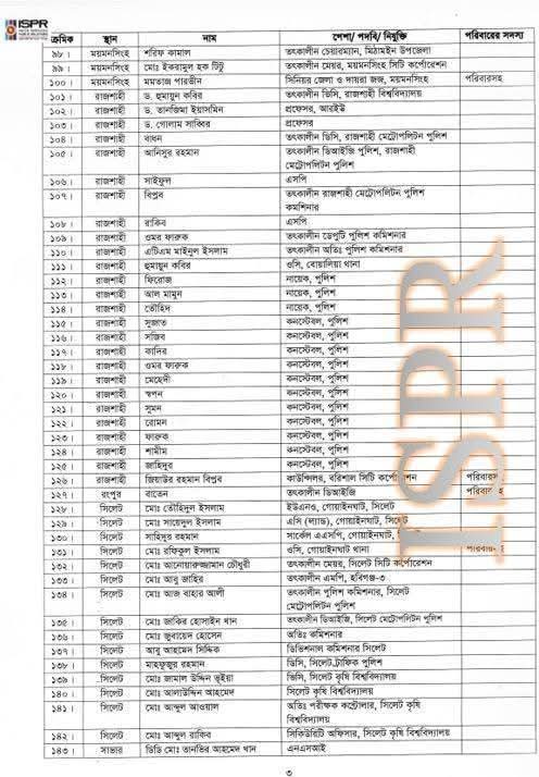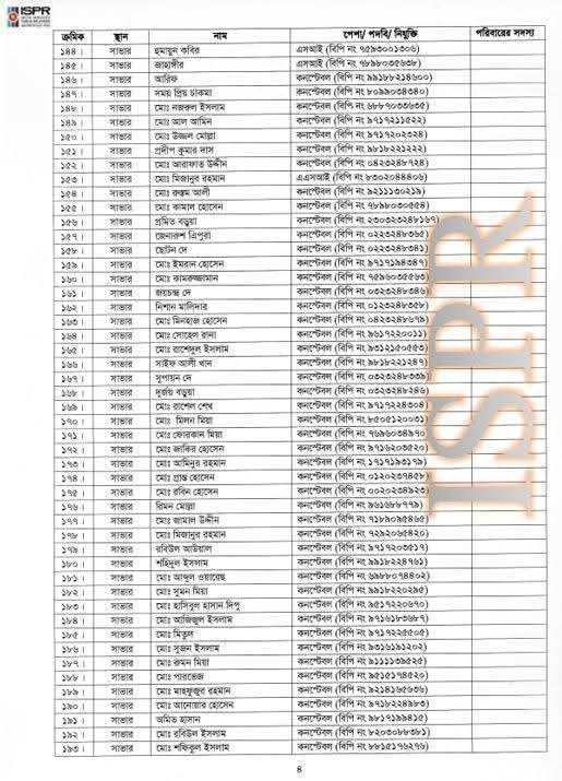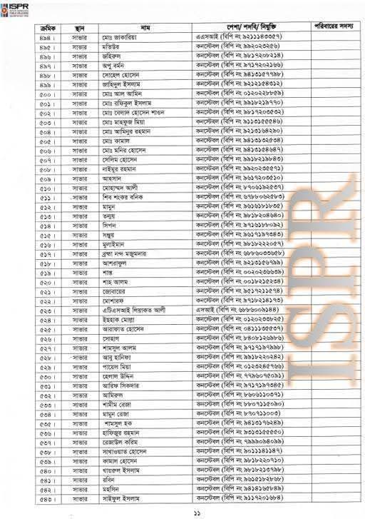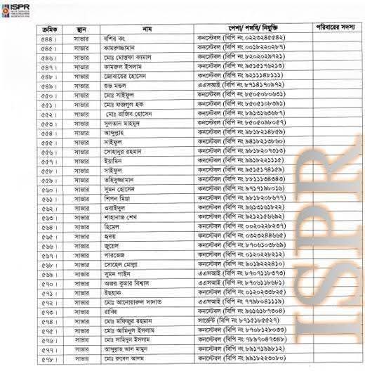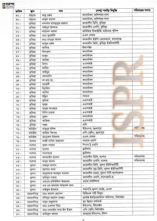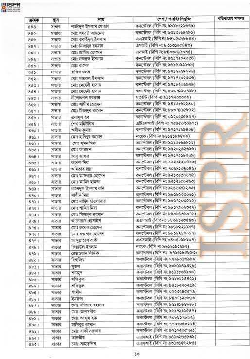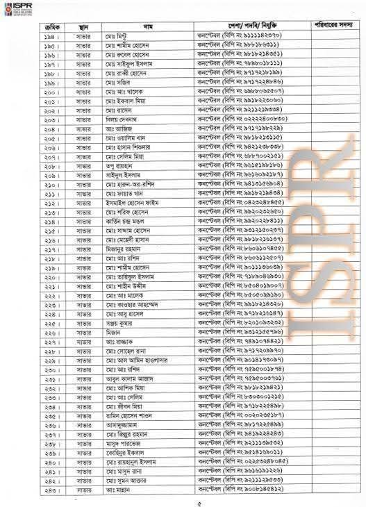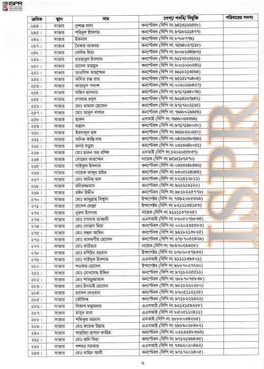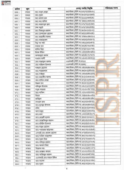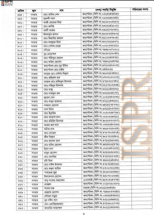 বৃহস্পতিবার (২২ মে) রাত সাড়ে ১০টার দিকে সেনাবাহিনীর ভেরিফায়েড ফেসবুক পেজে এ তালিকা প্রকাশ করা হয়।